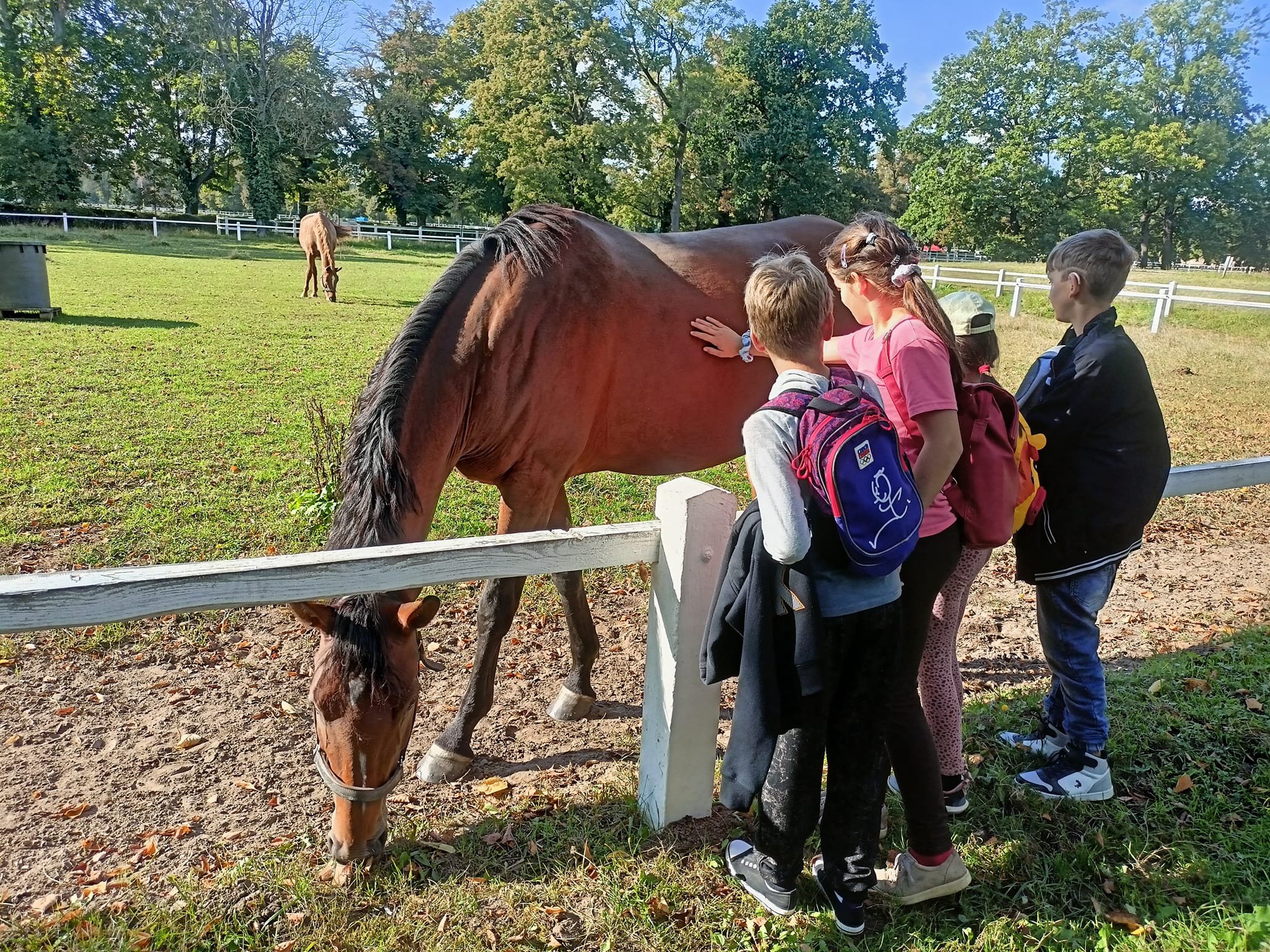 po naučné stezce kolem výběhů koní, zámku, hřebčína a zahrad. Odpověděli na jednotlivé otázky a dozvěděli se tak zajímavé informace o starokladrubských koních a místní přírodě. Postavili jsme domečky pro broučky, sbírali přírodniny na vyrábění (kaštany, žaludy) a výlet zakončili dobrou zmrzlinou